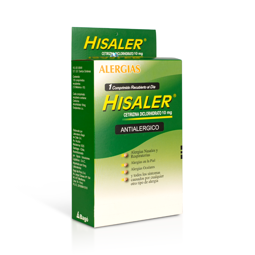 Cetirizina 10 mg / R.S. EE-00049 / Laboratorios Bagó del Perú S.A. RUC: 20160641810.