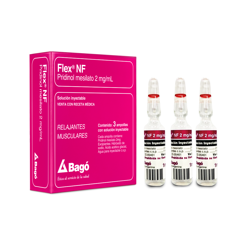 Pridinol mesilato 2mg/mL / R.S.: EE-05461 / Laboratorios Bagó del Perú S.A. RUC: 20160641810.